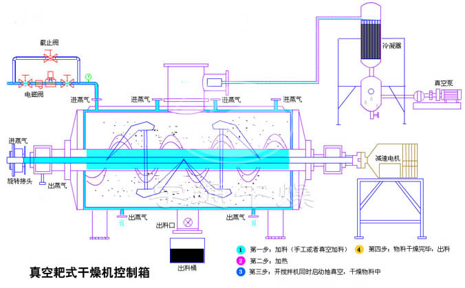 真空耙式干燥機操作簡單,進出物料方便,大幅度減輕了工人勞動強度,同時也減少了物料在干燥過程中受到的環(huán)境污染,提高了產(chǎn)品的質(zhì)量,符合藥品管理規(guī)范“GMP”的要求。