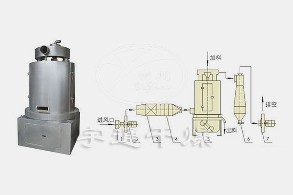 4、物料沿螺旋床自上而下作圓周運動的同時,自身也產(chǎn)生跳躍,從而增加了物料與熱風(fēng)的接觸,增強(qiáng)了干燥效果。