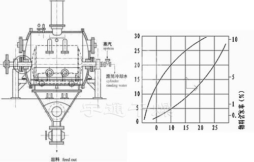 4、干燥速率大。由于涂抹于筒壁的料膜很薄,一般在0.3-1.5mm,且傳傳質(zhì)方向一致,料膜表面可保持20-70kg.H2O/m2.h的蒸發(fā)強(qiáng)度。