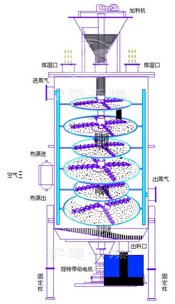 由于干燥盤(pán)層立式布置,立式安裝,既使干燥面積很大,占地面積也很小。