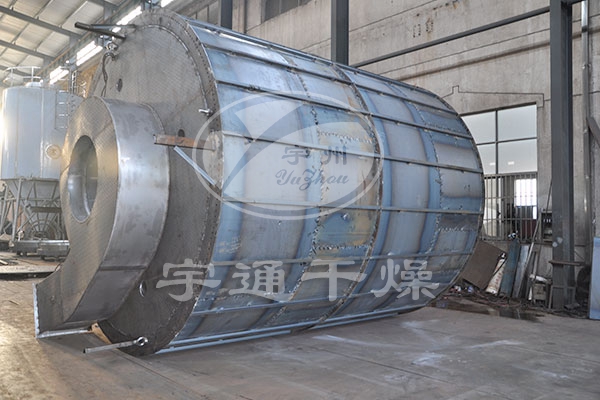??空氣經(jīng)過濾和加熱,進入干燥器頂部空氣分配器,熱空氣呈螺旋狀均勻地進入干燥室。料液經(jīng)塔體頂部的高速離心霧化器,(旋轉(zhuǎn))噴霧成極細微的霧狀液珠,與熱空氣并流接觸在極短的時間內(nèi)可干燥為成品。成品連續(xù)地由干燥塔底部和旋風分離器中輸出,廢氣由引風機排空。